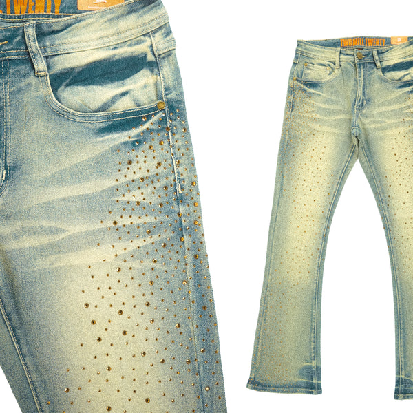 Aged Two-Tone Skinny Jeans in Vintage Blue