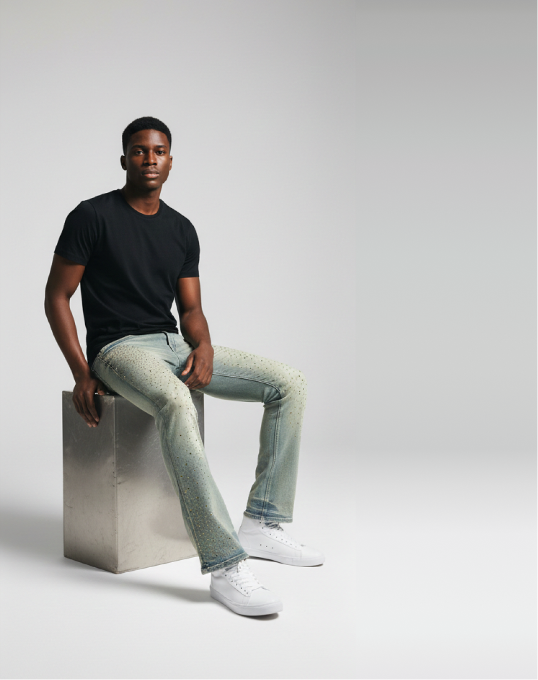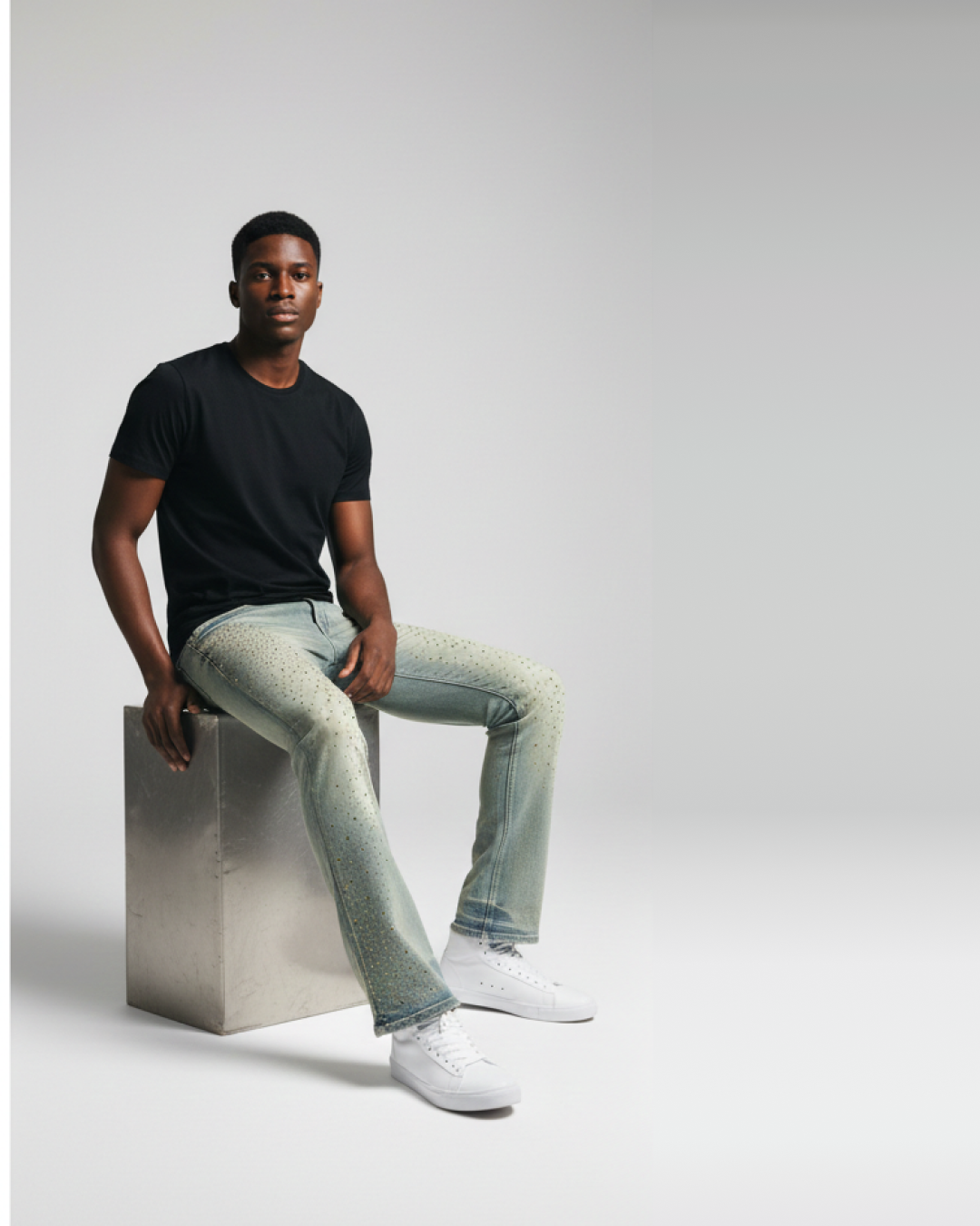 ARCHER | Geometric Patchwork Skinny Jeans in Gray Wash